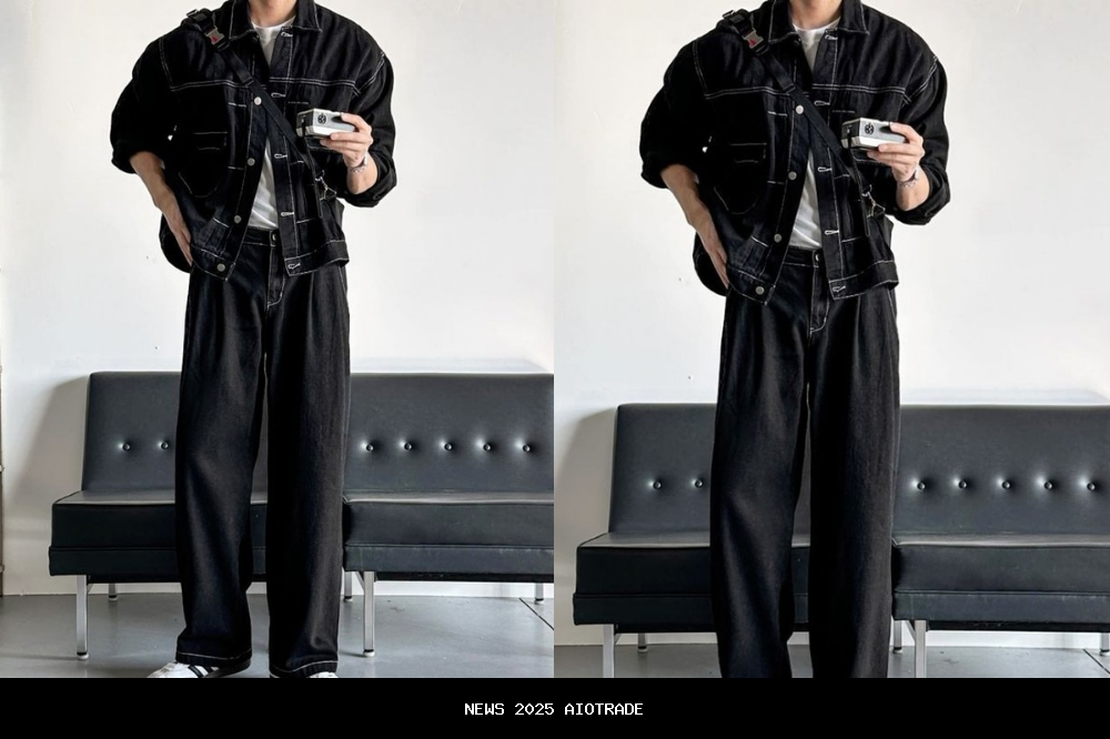 5. Tampilan streetwear gelap dengan jeans wide-leg yang keren