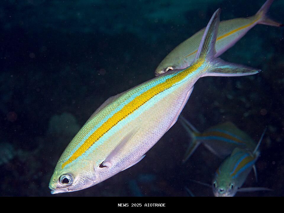Ikan ini memiliki warna yang menarik yaitu kuning biru. Tubuhnya berwarna perak biru dengan bagian belakang punggung yang berwarna kuning. Bagian perutnya lebih putih, sedangkan sirip dada berwarna putih dengan pangkal hitam. Ukuran maksimal mencapai 40 cm. Ikan ini tersebar di Samudra Hindia dan Barat, hidup di lereng luar terumbu karang dan suka berenang dalam kelompok untuk mencari plankton. -