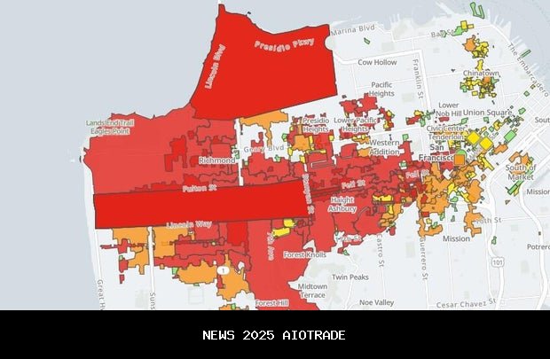 Thepeta gangguanmenunjukkan The Presidio, Seacliff, Outer dan Inner Richmond, Golden Gate Park, Panhandle, Inner dan Outer Sunset, serta sebagian wilayah West of Twin Peaks sebagai yang terkena dampak. Bagian Western Addition dan Downtown juga ditampilkan sebagai bagian dari pemadaman listrik.
