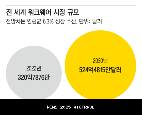 Pakaian kerja, yang dahulu merupakan seragam dari lokasi industri, kini muncul sebagai "lautan biru" di industri pakaian yang sedang kesulitan. Menurut perusahaan riset pasar Insight Partners, pasar pakaian kerja global diperkirakan akan berkembang dari 32,07876 miliar dolar (sekitar 44,37 triliun won) pada tahun 2022 menjadi 52,44815 miliar dolar (sekitar 72,54 triliun won) pada tahun 2030. Pasar pakaian kerja domestik, yang diperkirakan sebesar 1-1,5 triliun won pada tahun lalu, juga diperkirakan akan terus tumbuh secara stabil.