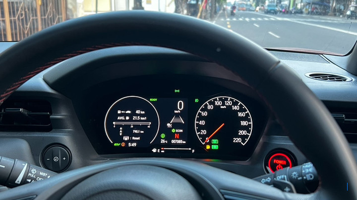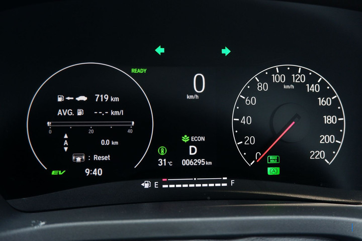 Pada pagi menjelang siang, Honda HR-V Hybrid langsung menunjukkan karakter khasnya. Sistem hibrida yang menggabungkan mesin bensin 1.5 liter dengan motor listrik bekerja dalam harmoni, terasa halus dan nyaris tanpa jeda. Konsep "Electric First" menjadi kunci efisiensi bensinnya, sehingga endurance test ini terbilang cukup capek. Capek dalam artian menghabiskan bensinnya maksudnya. Sebelum memulai petualangan jauh, BBM kami isi penuh hingga keluar dari mulut tangki. Di atas kertas, saat diisi penuh bahan bakar bisa menenggak 40 liter. Tak lupa MID (Multi-Information Display) di-reset semuanya nol, karena ingin membandingkan hasil full to full dan dari MID.