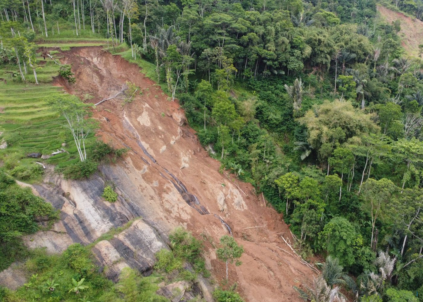 "Langsung ngaborobot (Tanah di tebing itu langsung berguguran)," ujarnya. Adar sempat berteriak mengingatkan seorang warga yang tengah menyadap kawung di bawah tebing itu. Warga tersebut selamat karena anaknya telah datang lebih dulu dan memberitahu agar meninggalkan lokasi tersebut. Menurut Adar, peristiwa itu bukan kali pertama terjadi di Gintung. Pada 2024 lalu, longsor juga terjadi di beberapa titik di kawasan kampung tersebut.